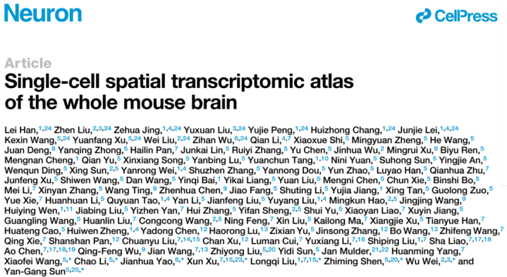 此外,3月24日,中国科学院脑科学与智能技术卓越中心,联合杭州华大生命科学研究院、临港实验室、腾讯AI实验室和上海脑中心等科研单位,利用覆盖全基因组范围的单细胞转录组和空间转录组技术,构建了具有单细胞分辨率的小鼠大脑图谱,相关成果在线发表在《Neuron》杂志,为大脑功能的理解提供了全新的空间视角。