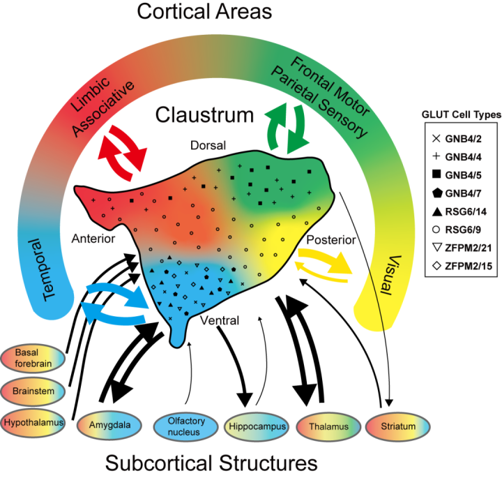 研究发现猕猴屏状核按照皮层投射偏好可分为四个亚区,猕猴屏状核与小脑外所有皮层脑区和皮层下核团相连,是大脑的连接中枢,并且屏状核内部在前后轴方向存在广泛联系,为灵长类意识的产生提供了多模态信息整合的基础。